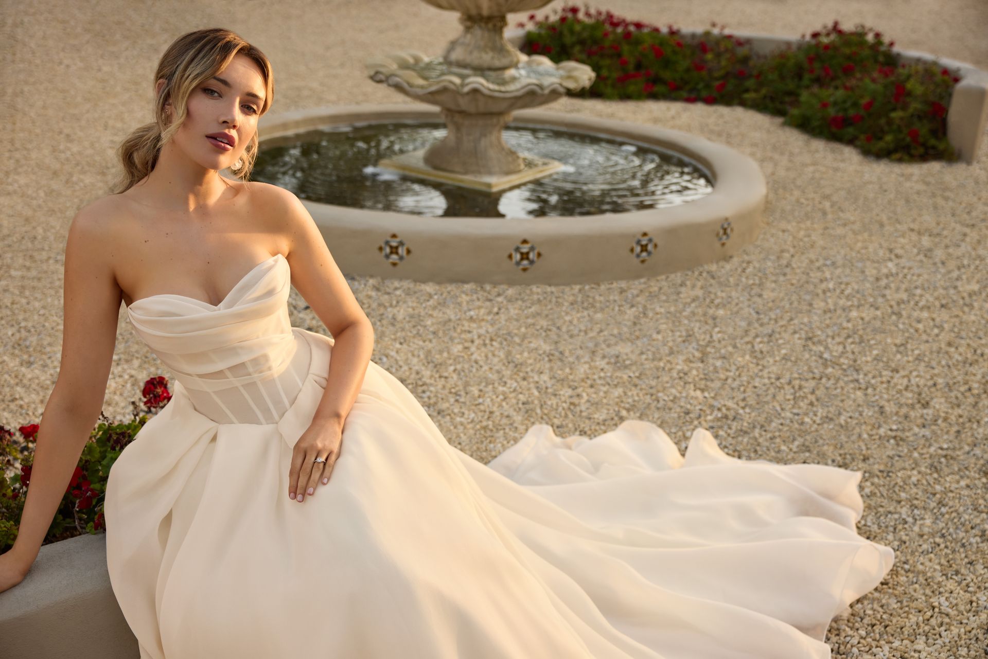 The face behind Sophia Tolli is Sophia Apostolides, who has been recognised as one of the bridal industry’s most talented designers. Her bridal dresses are inspired by real women, with the aim to create unforgettable designs that highlight natural beauty and a unique bridal style. Sophia born and raised in Sydney, Australia is a graduate of the fashion design studio. All of her dress are diverse in their creative approach to perfectly dressing a women’s body. Driven by the endless design possibilities that come with it., her collections cater for all shapes, sizes, budgets and tastes.
